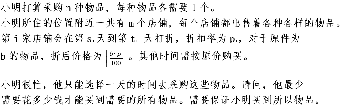 输出一行包含一个整数表示小明需要花费的最少的钱数。